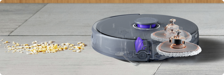 Prin identificarea murdăriei în timp real, cipurile duble AI activează funcțiile de aspirare sau de ștergere. Praf detectat? Ștergerea este oprită, aspirarea activată. Lichid? Ștergere activată, aspirare oprită.